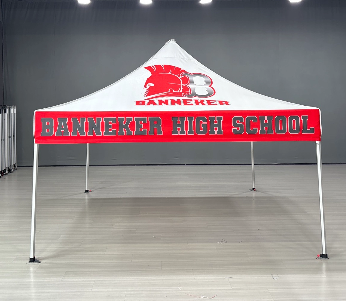 There is no doubt when it comes to high school sports, it doesn’t get any bigger or better than in Texas. Seriously, where are the best high school football teams and stadiums in the country? Texas. Who has the biggest and best marching bands in the country? Texas. It shows such that sports are an ingrained part of the culture in Texas. Students and parents alike are invested in the traditions and hard work of being the best. A custom High School Sports and Clubs tent will be a great investment to help show other teams that your team is a serious contender at regular games or to make your Friday Night Lights just that much better! Our custom tents let you know where your people are, where the support will come from and where you can go when you need something! Not to mention its a great place to have a team meeting in comfort and shelter from the elements. We are sure the entire team will be proud to meet in a tent made for them. Use a bright, colorful tent to attract your customers to the best the market has to offer. Branded with your logo, your contact info will be easily accesible to hundreds of people at one time.